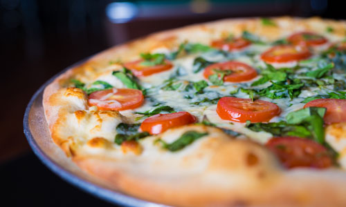 Thin NY style pizza served day and night