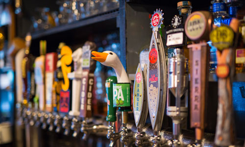 10 beers on draft and 80 plus bottles and cans